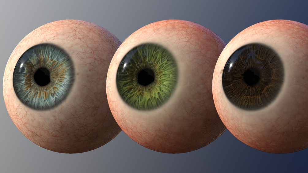 Many parameters can be changed as amount of veins, color, size, iris fibers and more. It includes some damage and disease options: stroke, cataract and blindness.